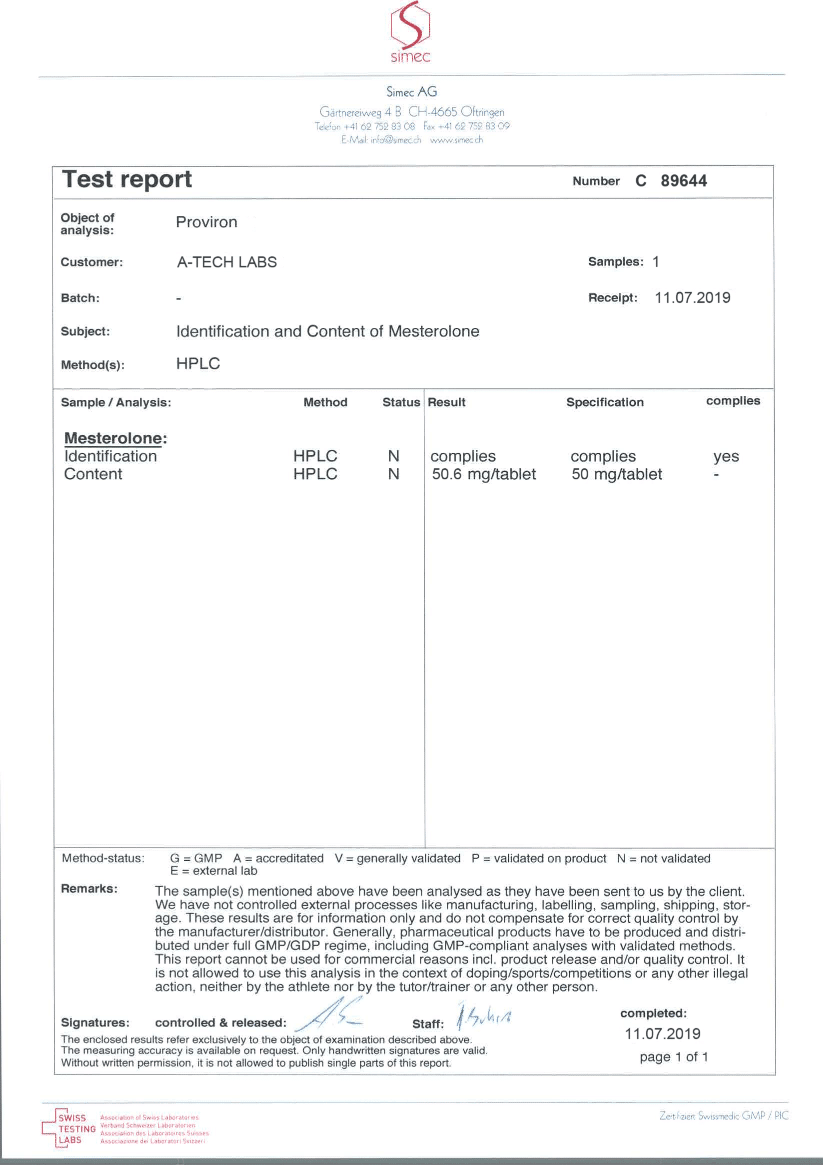 The product is of high quality. Works as it should. For me, Proviron is a must for every test cycle!
